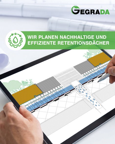Das GEGRADA® Retentionsdach ist ein technisch abgestimmter Schichtaufbau zur Rückhaltung und gedrosselten Ableitung von Regenwasser auf Dachflächen.